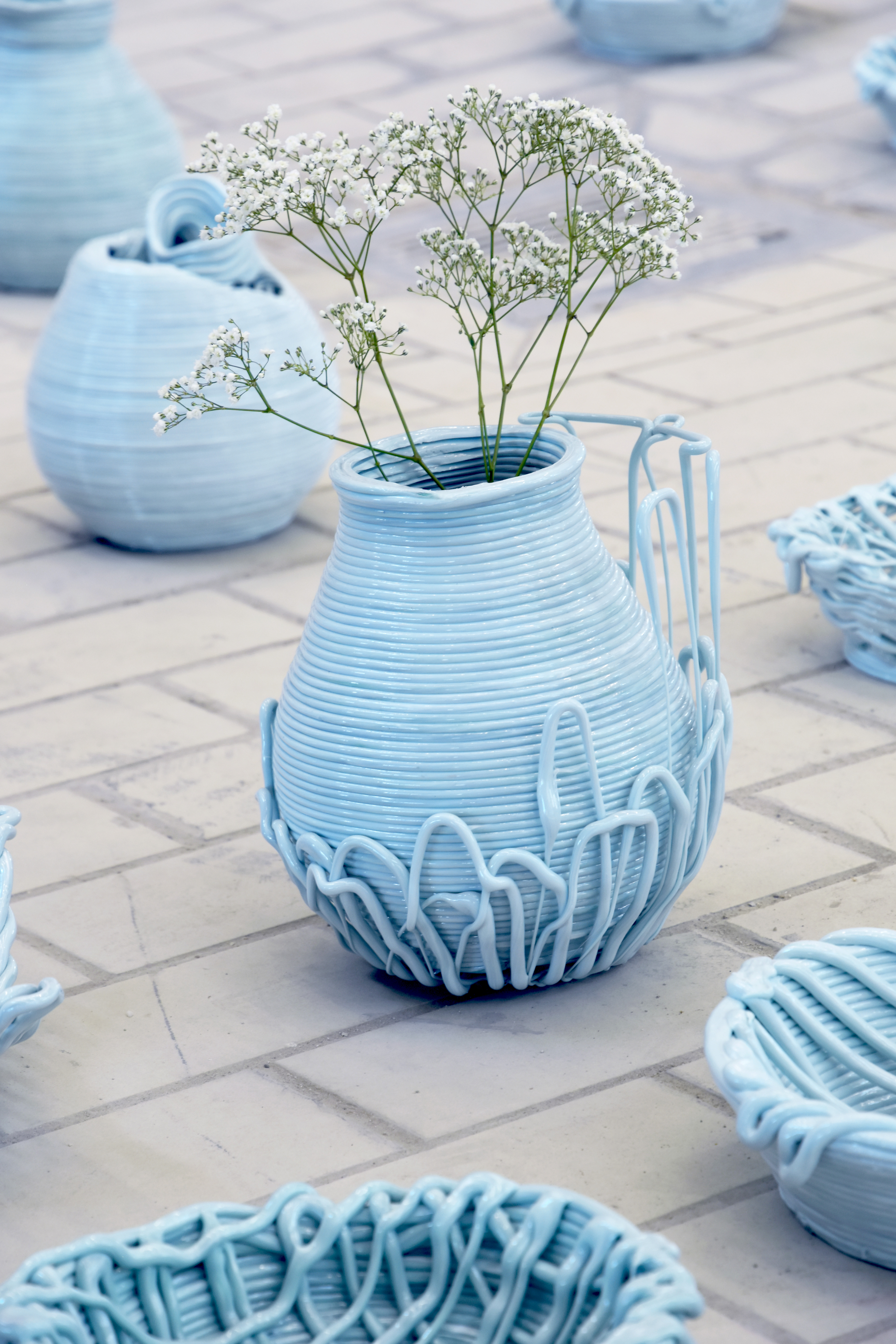 A series of tests and samples are presented that could be used now as functional objects, with the potential to be scaled up for future application in furniture design or even architecture. By observing the nuances of the 3D-printing process, ‘Layered Lines’ asks whether a designer’s role can shift from controlling a machine to collaborating with it.